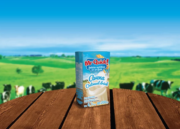 Mezcla de Leche‚ agua y avena entera Ultra alta pasteurizada recombinada lista para consumir.